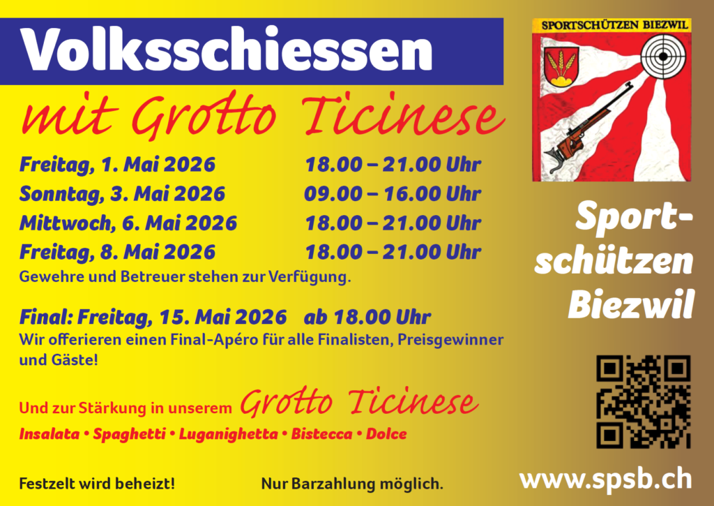 Im Mai ist es wieder so weit – das traditionelle Volksschiessen der Sportschützen Biezwil steht vor der Tür.